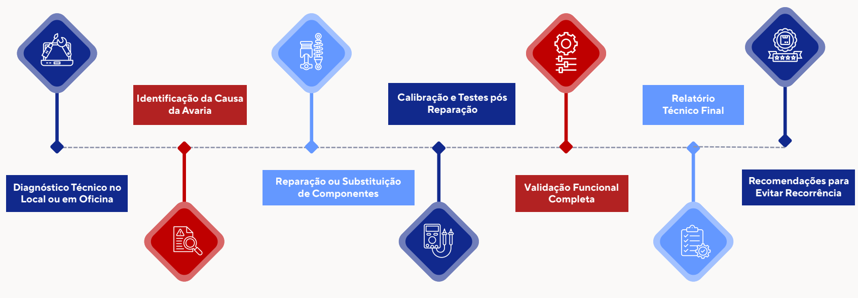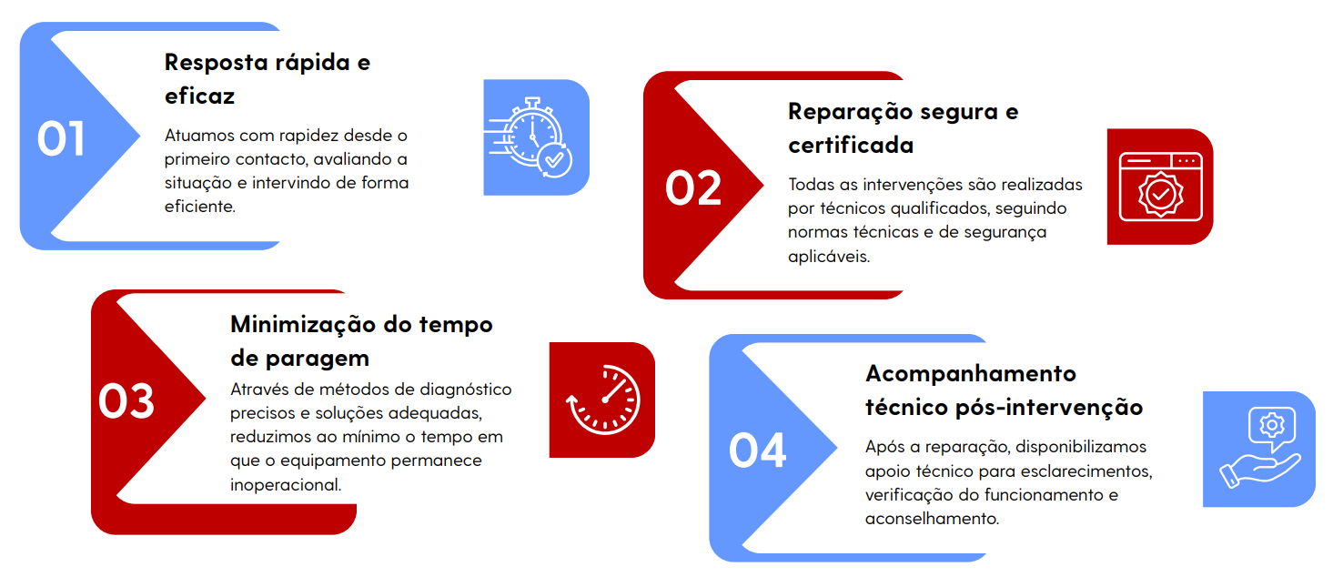 A manutenção corretiva consiste na intervenção técnica realizada após a ocorrência de uma falha, avaria ou anomalia no equipamento. O principal objetivo é restabelecer o seu funcionamento normal com a máxima rapidez, assegurando condições de segurança, fiabilidade e precisão. Para tal, a nossa equipa técnica recorre a métodos de diagnóstico eficientes e soluções adequadas, minimizando os tempos de paragem e reduzindo o impacto na operação.